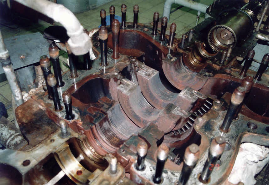 Überwachungs- u. Revisionsarbeiten an einer Gegendruckturbine/Turbosatz nach dem Aufdeckeln (Steuerseite) Situation der Labyrinthe