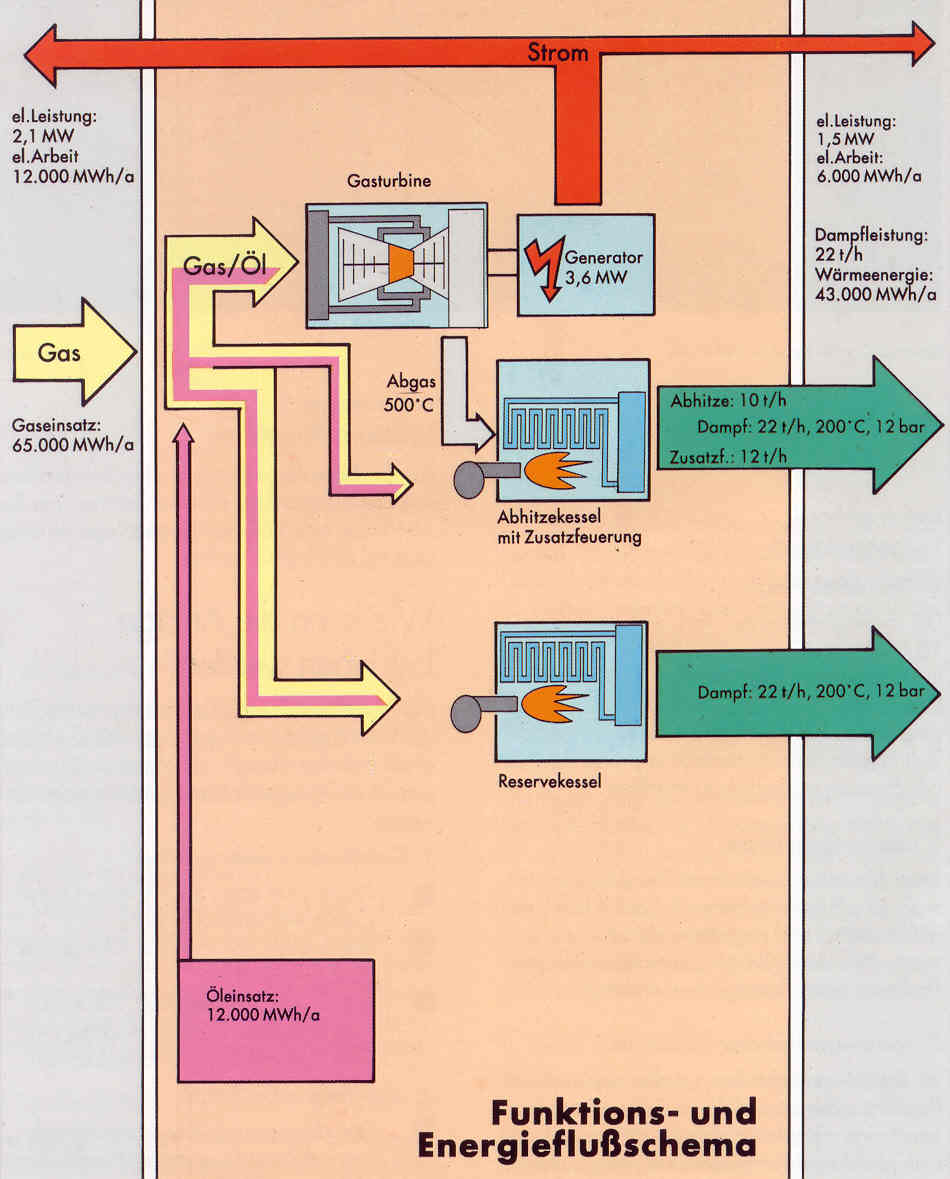 Projektleitung für De- und Remontage inkl. Inbetriebnahme und Übergabe zur Betriebsverlagerung eines IHKW (Gasturbine / Abhitzekessel + Spitzenlastkessel) Funktions- u. Energiefluss-Schema